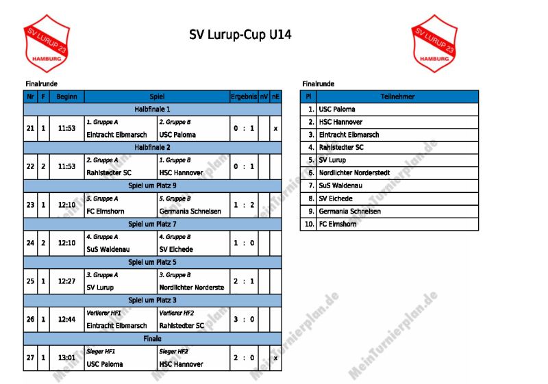 Turnier 1: Spielplan Endrunde