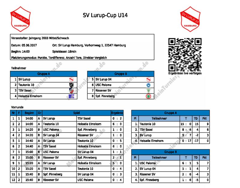 Turnier 2: Spielplan Vorrunde